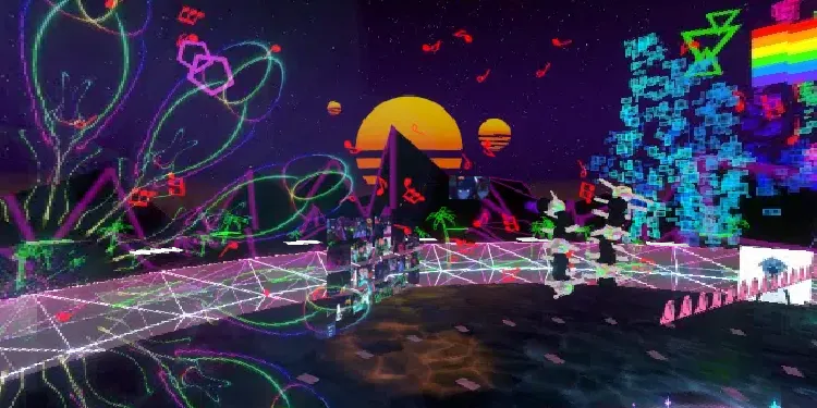 A Social Hangout world inspired by the aesthetics of the late 90's to mid 2000's, a mix of Y2K Futurism & Frutiger Aero.