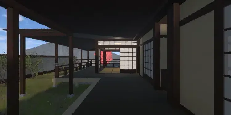 A simple Japanese themed atmospheric world with lots of interactive items and doors.